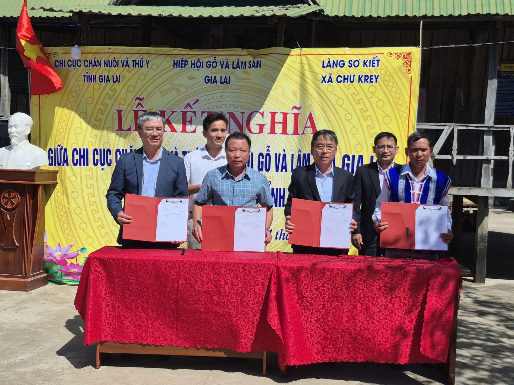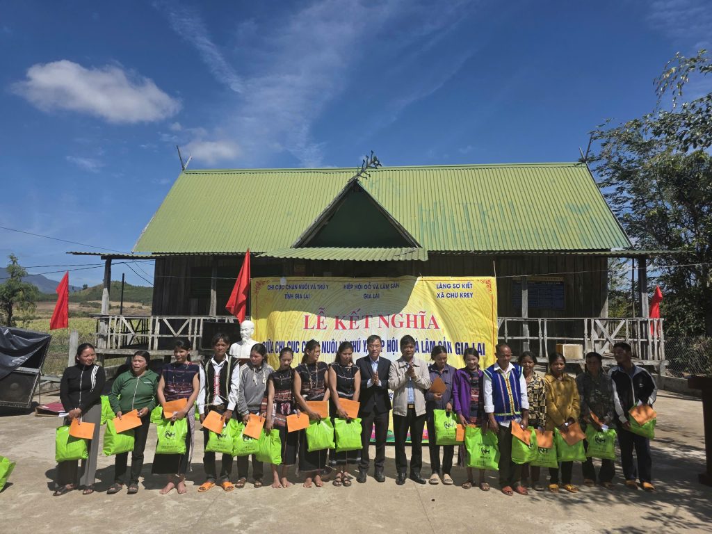 Lễ kết nghĩa giữa Chi cục Chăn nuôi và Thú y, Hiệp hội gỗ và Lâm sản Gia Lai với Làng Sơ Kiết, xã Chư Krey, tỉnh Gia Lai