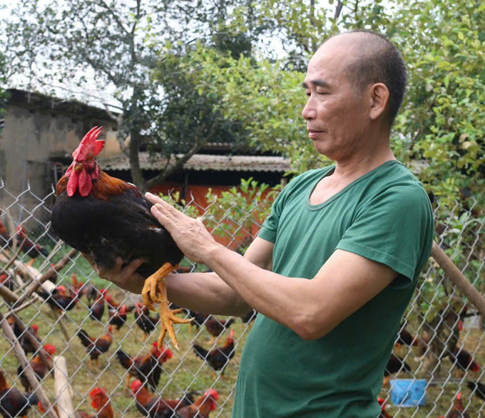 Anh Trần Văn Tuấn ở tỉnh Thái Nguyên vẫn rất tự tin dù thị trường gà lông màu đang xuống sâu kỷ lục nhờ anh đang nuôi 100% giống gà Mía số 1.